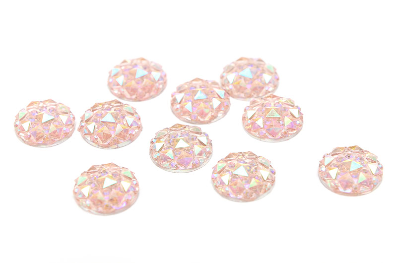 Cabochon i akryl med 3D mönster och en fantastisk finish med AB skimmer som gör att denna skiftar i olika färger och olika mönster kommer fram beroende på vinkel.