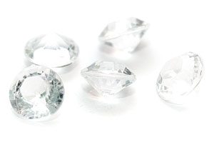 fasetterade små diamanter i akryl som inte har några borrade hål utan kan användas som dekoration på många andra sätt.