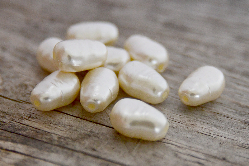 Akrylpärlor som imiterar sötvattenspärlor i en oregelbunden form som kallas Barock vilket är en form av ”nugget”