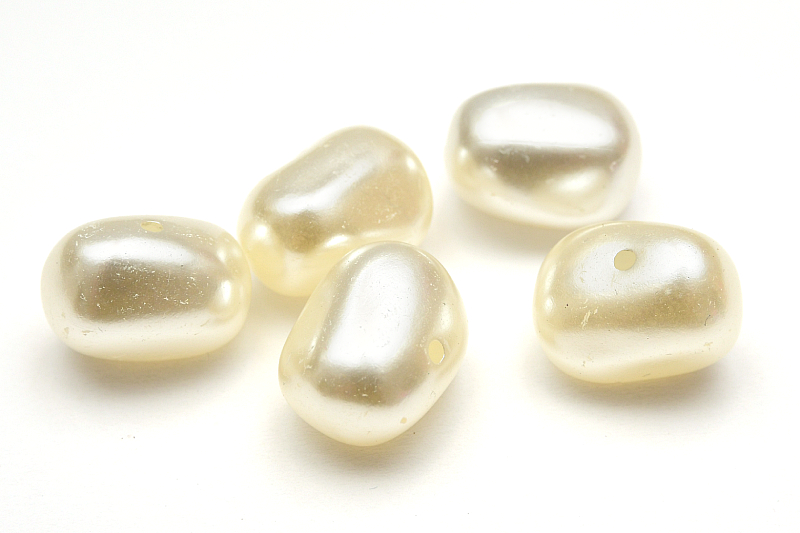 Akrylpärlor som imiterar sötvattenspärlor i en oregelbunden form som kallas Barock vilket är en form av ”nugget”