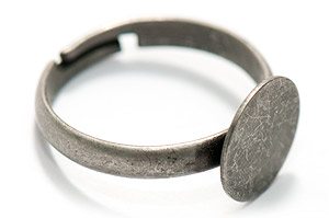 Antik/rustikbehandlad ringstomme med justerbar storlek och en platta att limma fast en cabochon eller liknande.