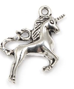 Antiksilver berlock i form av en vacker enhörning (hel kropp) Berlocken ser likadan ut på båda sidor.