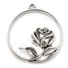 Stor och tung berlock i form av en ros som har vit emalj nedsjunket mellan kronbladen.