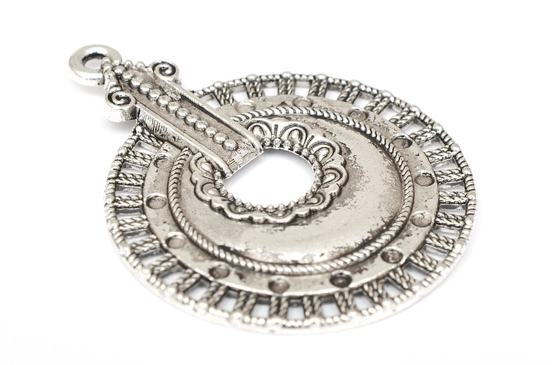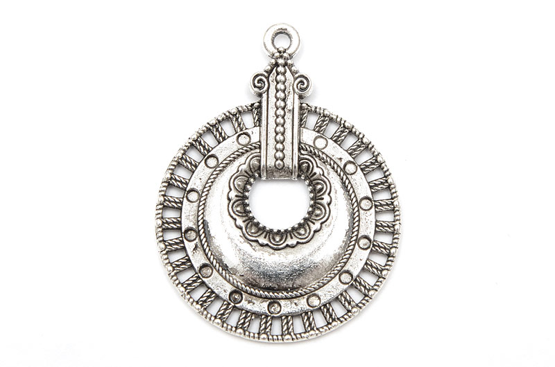 Antiksilver berlock som även kan användas som örhängesämne eller t o m connecter pga sina många håligheter längs hela cirkeln.