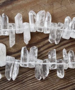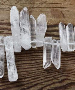 Äkta bergskristall i form av spetsar som du ex. kan göra crystal bullets med eller vira metalltrådrunt för att göra som hänge. Dessa spetsar har ett borrat hål genom hela ena änden och är mjuka och runda i kanterna.