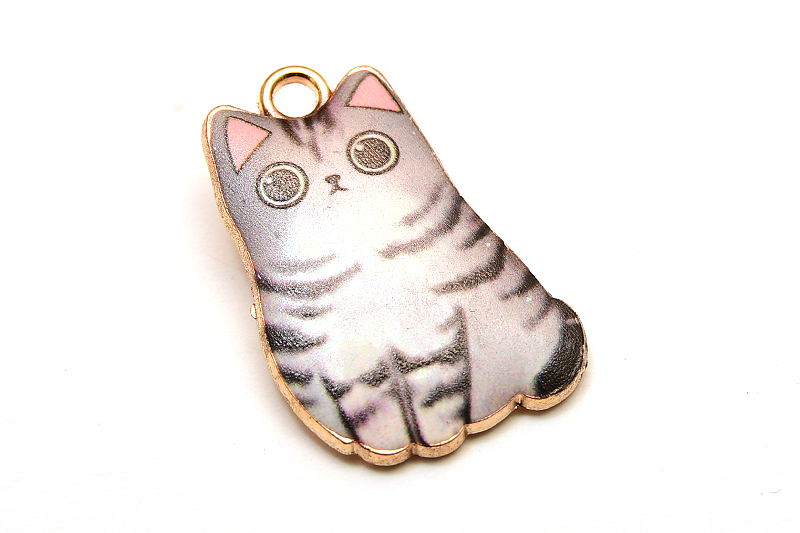 En ljust guldpläterad berlock med färgad katt som liknar rasen sibir