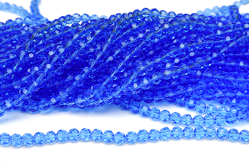 Runda fasetterade glaspärlor i transparent svagt blå färg