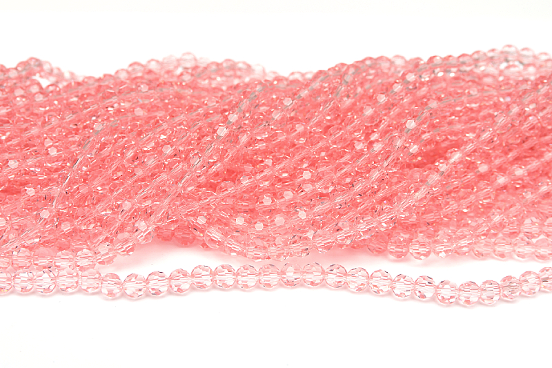 Runda fasetterade glaspärlor i transparent ljusrosa färg