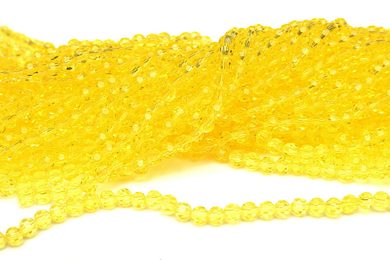 En hel sträng med facettslipade glaspärlor i transparent färg