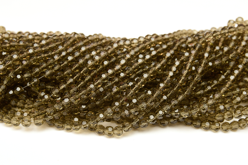 En hel sträng med facettslipade glaspärlor i transparent färg