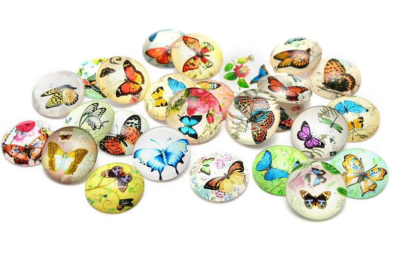 Vackra cabochoner med mixade naturmotiv med fjärilar och blommor. Skickas i random mix