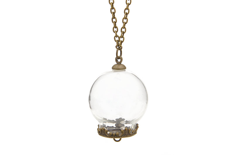 Ett färdigt ”kit” med en glaskula att fylla med något vackert och en bottenplatta som har en ögla för att vidare hänga något i, och ett fäste att sätta ovanpå kulan (det går även att skippa det övre fästet och hänga kulan i bottenplattan)