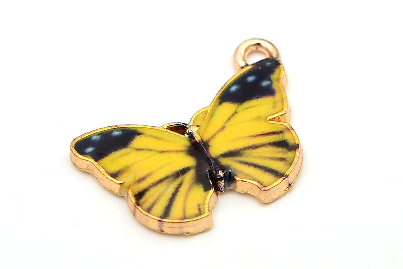Denna vackra berlock har ett foto-tryck ovanpå emaljen som gör att berlocken verkligen liknar en riktig fjäril. Öglan hänger i ena vingen vilket gör att berlocken hänger snett.