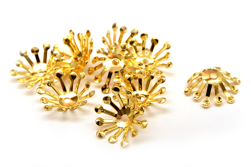 Guldpläterade tunna pärlhattar som kan användas som pistiller inuti en blomma.