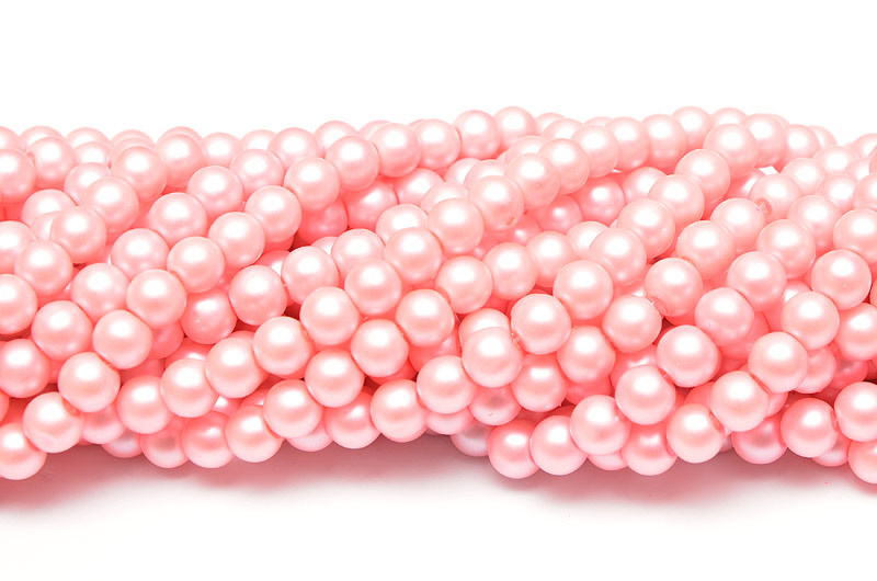 Hel sträng vaxade glaspärlor med en matt yta. Färglagringar kan förekomma vid hålen som är enkelt att ta bort.
