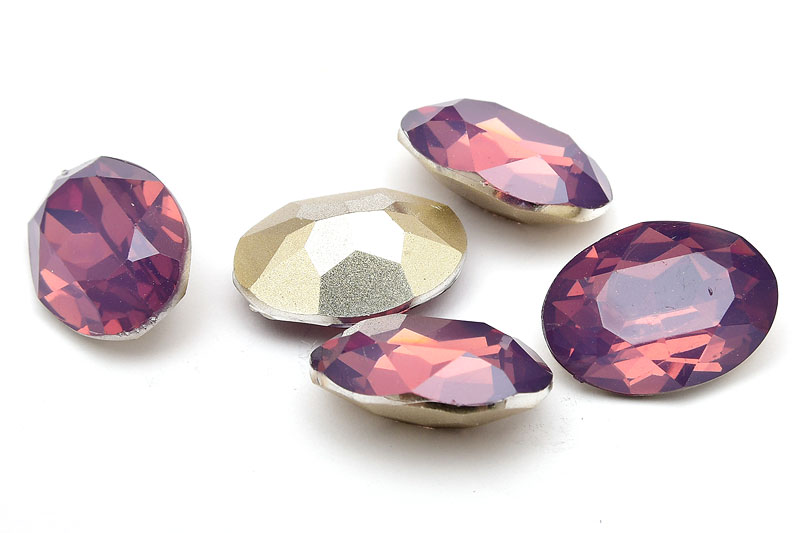 Oval cabochon i akryl med en fantastisk vacker opaleffekt. Baksidan är silverfärgad som ger en fin effekt genom den halvtransparenta cabochonen.