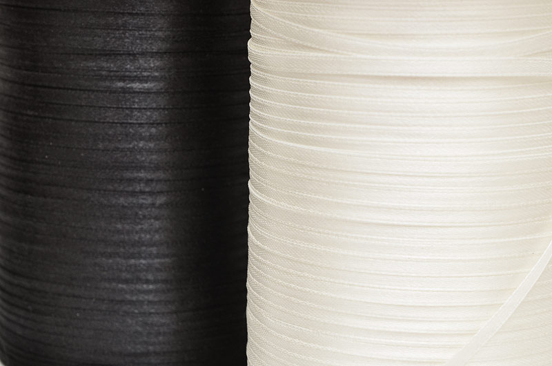 Smalt sidenband. Ena sidan är blankare än andra vilket gör att den har en tydlig ”fram och baksida” Välj mellan svart eller vit färg.