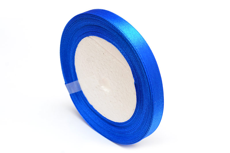 Hel rulle sidenband, ca 22 meter. Ena sidan är blankare än andra vilket gör att den har en tydlig ”fram och baksida” Färgen är en stark blå