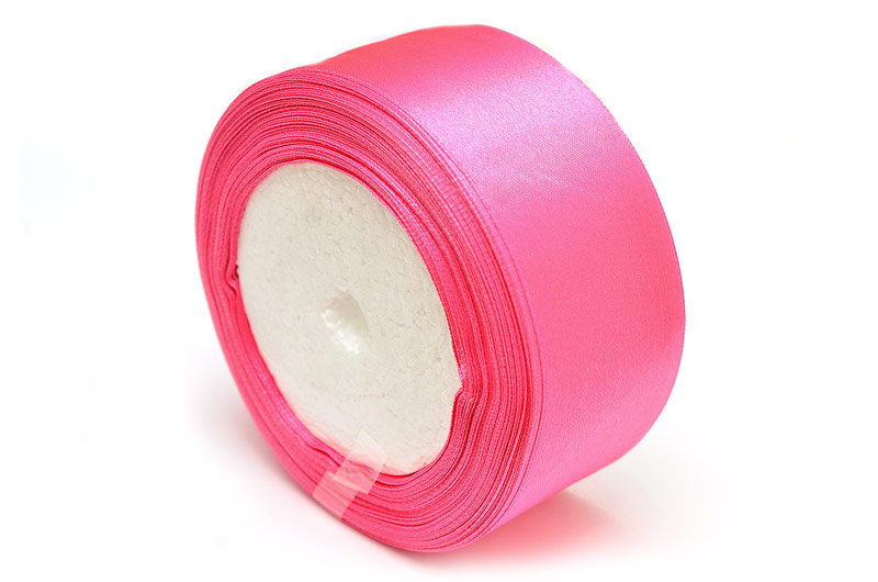 Hel rulle sidenband, ca 22 meter. Ena sidan är blankare än andra vilket gör att den har en tydlig ”fram och baksida” Färgen är en stark cerise rose