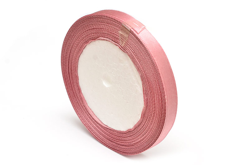 Hel rulle sidenband, ca 22 meter. Ena sidan är blankare än andra vilket gör att den har en tydlig ”fram och baksida” Färgen är en svag gammelrosa ton