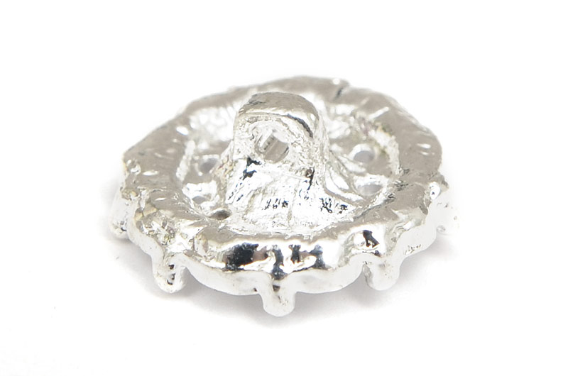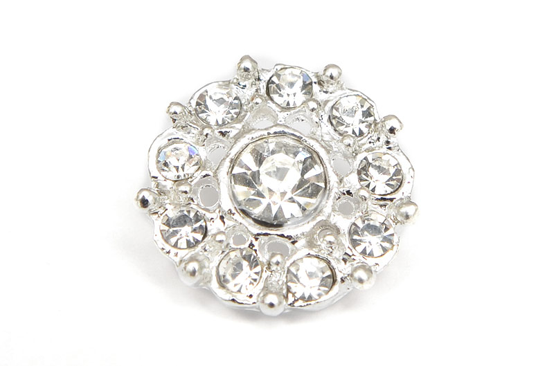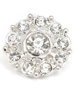 Silverpläterad metallknapp med vackra gnistrande kristaller som höjer kvalitén på hela smycket. En knapp kan exempelvis användas som lås till armband, och behöver då en motsvarande ögla i andra änden som träs över knappen.