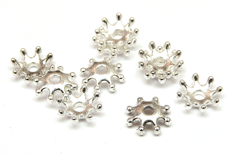 Silverpläterade pärlhattar som även kan användas som pistiller inuti en blomma.