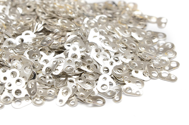 Silverpläterade tabs. Haka fast karbinerna eller övriga lås i en tillhörande tab.