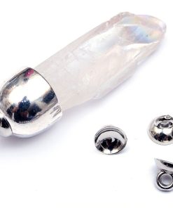 Kristallen är ganska stor, ca 30-60mm lång. Fästets öppning är ca 14mm och kristallen du får med får plats i fästet men den är ej fastlimmad. Till det behöver du Lim, detta lim gör att du kan fylla fästet för att ge bra stadga till kristallen även om den är lite smalare än fästet. Stabilisera den rakt medan den torkar bara, vilket kan dröja upp till 2 dygn.