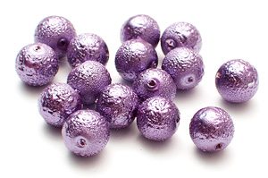 Glaspärlor med en skrovlig yta. som om man har utsatt pärlan för hög värme. Strukturen är unik från pärla till pärla.