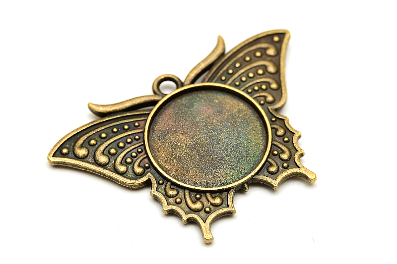 Vintage berlock i form av en fjäril som har plats för en cabochon i storlek 18-19mm på ena sidan och på baksidan är den en full fjäril med vackra detaljer