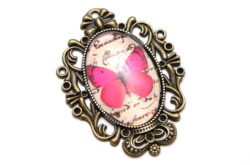 Stor stomme med glascabochon. Färdig att använda som den är, eller att dekorera med några små strass stenar (får plats 11st ca 1,5mm) Häng som berlock med öglan högst upp, eller med de två öglor på sidan. En mycket mångsidig centerpiece i underbar kvalité.