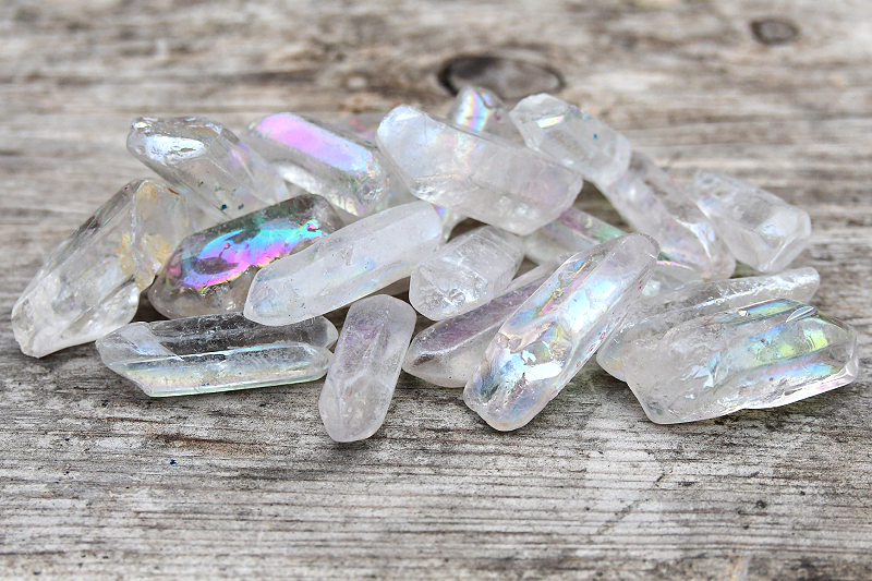 Bergskristall i storlek XL, bilden visar hur de skiftar i färger och storlek. Storleken varierar mellan 35-60mm lång, 15-25mm bred.